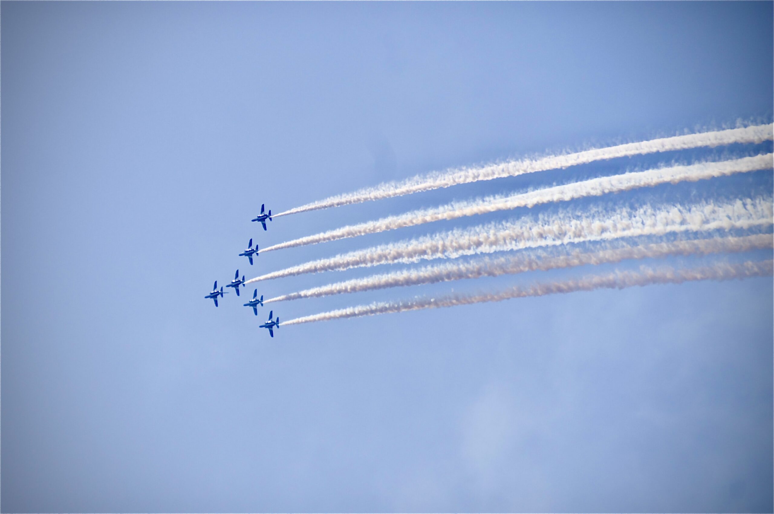 青空に美しい軌跡を描くダイナミックな飛行が披露され、とても素晴らしい光景でした。