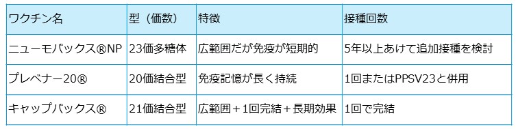 成人の重症肺炎や菌血症で多い型をしっかり網羅できるよう設計されており、「これまでのワクチンでは防ぎきれなかった肺炎にも対応」できるのが大きな特徴の一つです。