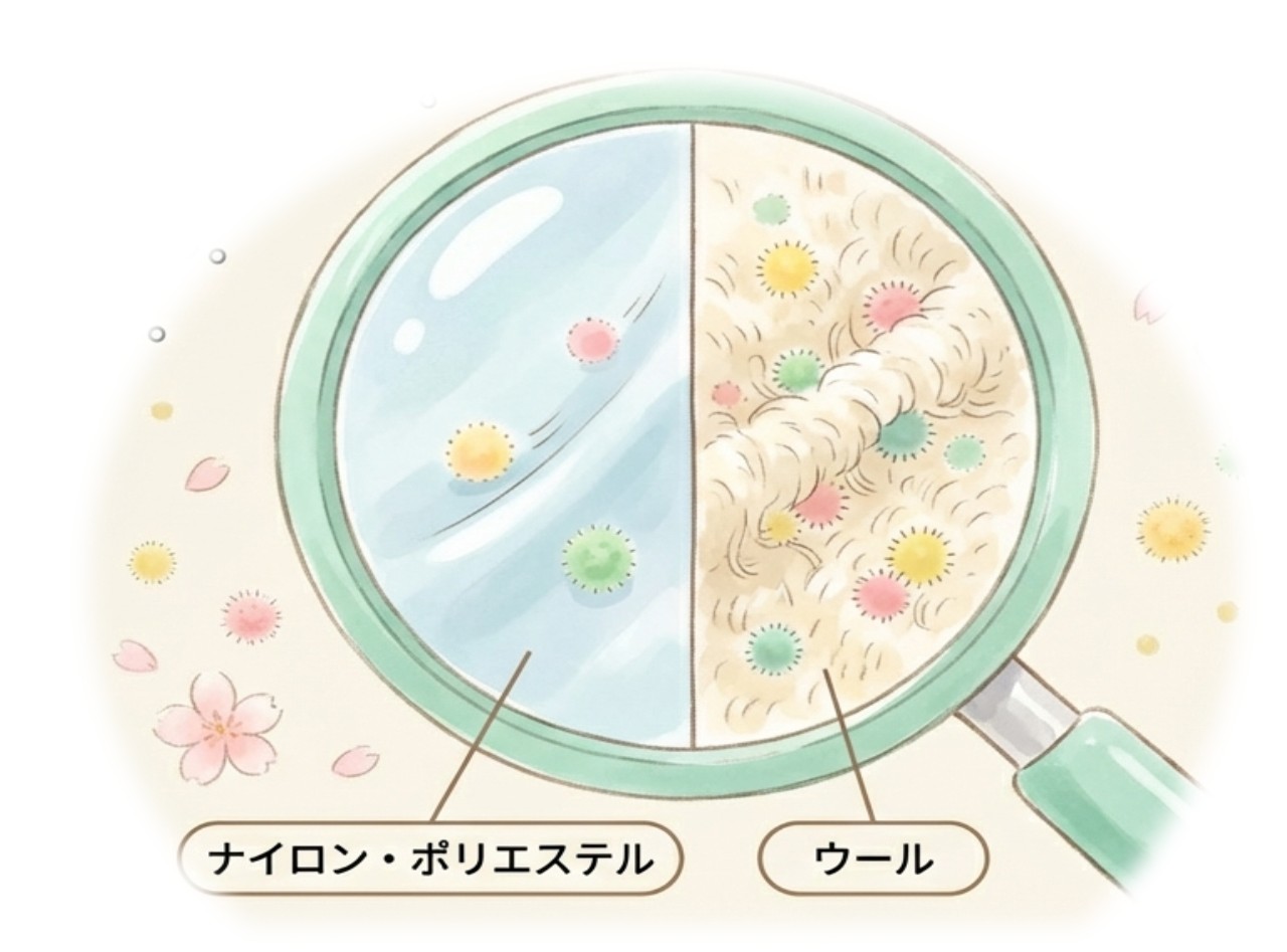 ウールなどの起毛素材は、花粉が絡みつきやすい特徴があります。
