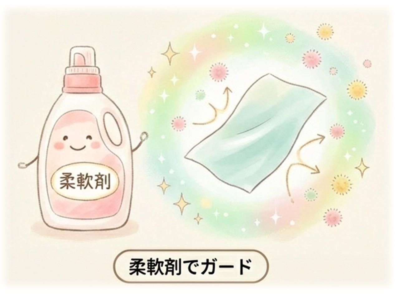 対策としては、洗濯時に柔軟剤を使うこと。