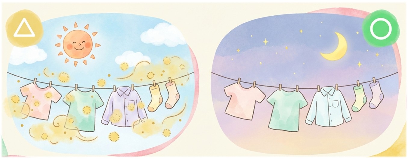 気持ちよく乾きそうな時間ほど、実は花粉も多いんです。