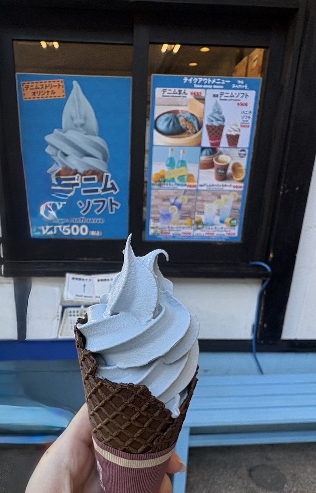 まずは、推しが食べていた「デニムソフト」という少し珍しいソフトクリームを食べに行きました。