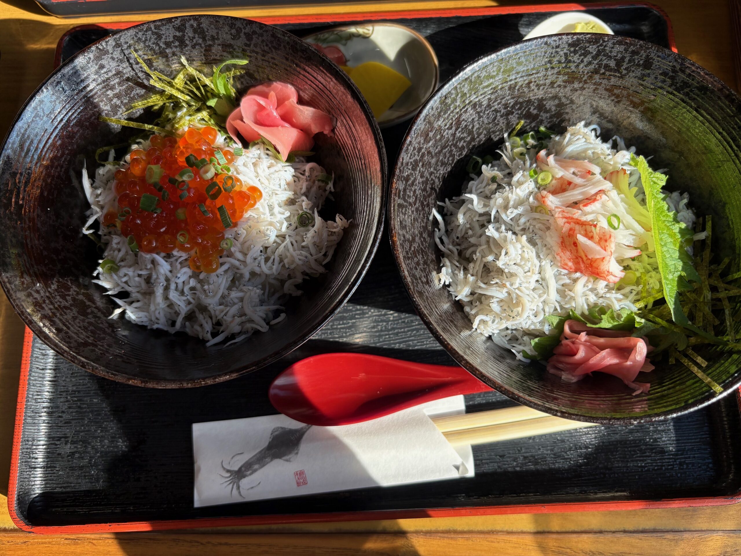 稚児ケ淵付近にある目的地のしらす丼のお店へ。