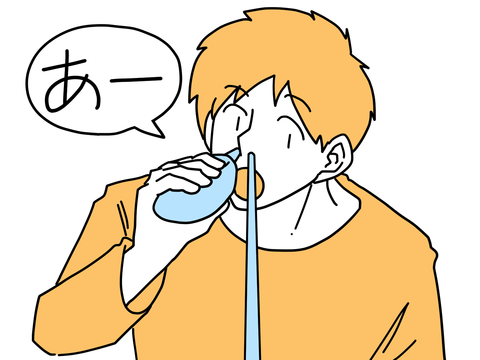 - 口を軽く開けて「あー」と声を出す
