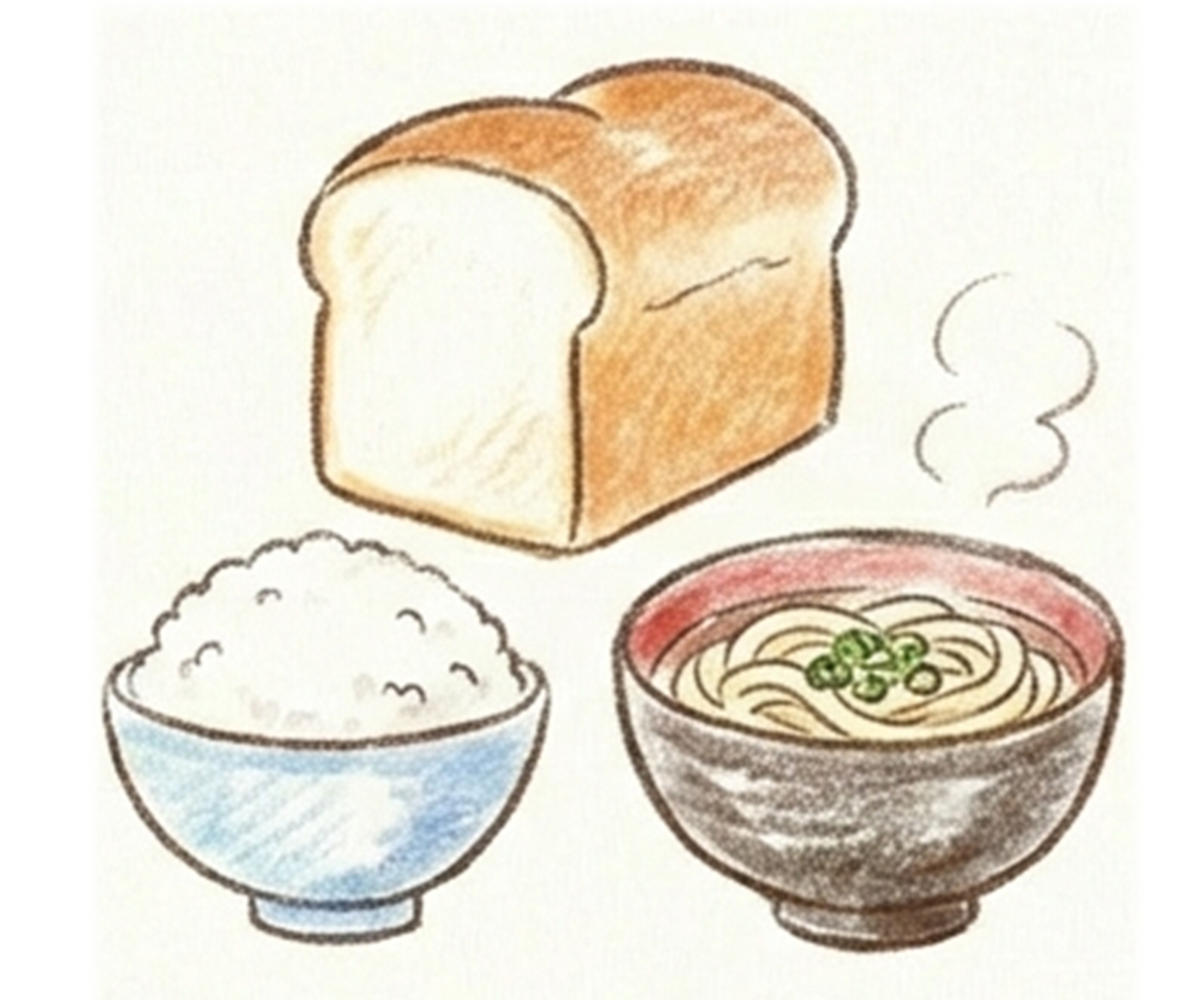 白米、食パン、うどん。