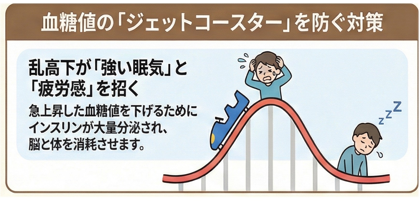 血糖値がジェットコースターのように動けば、体も脳も、消耗してしまいます。