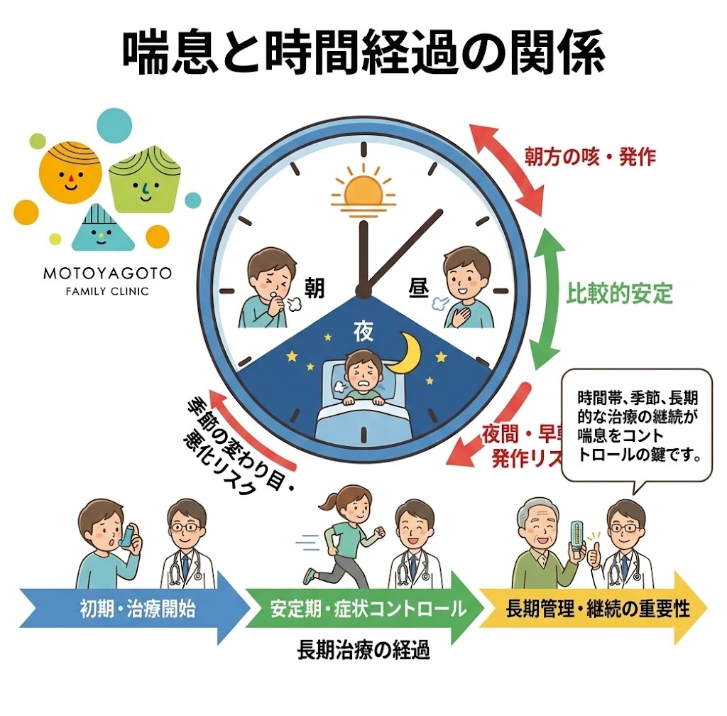 喘息というと、「アレルギー」「炎症」「吸入薬」というイメージが強いかもしれませんが、実は「時間」という視点もとても大切だと感じています。