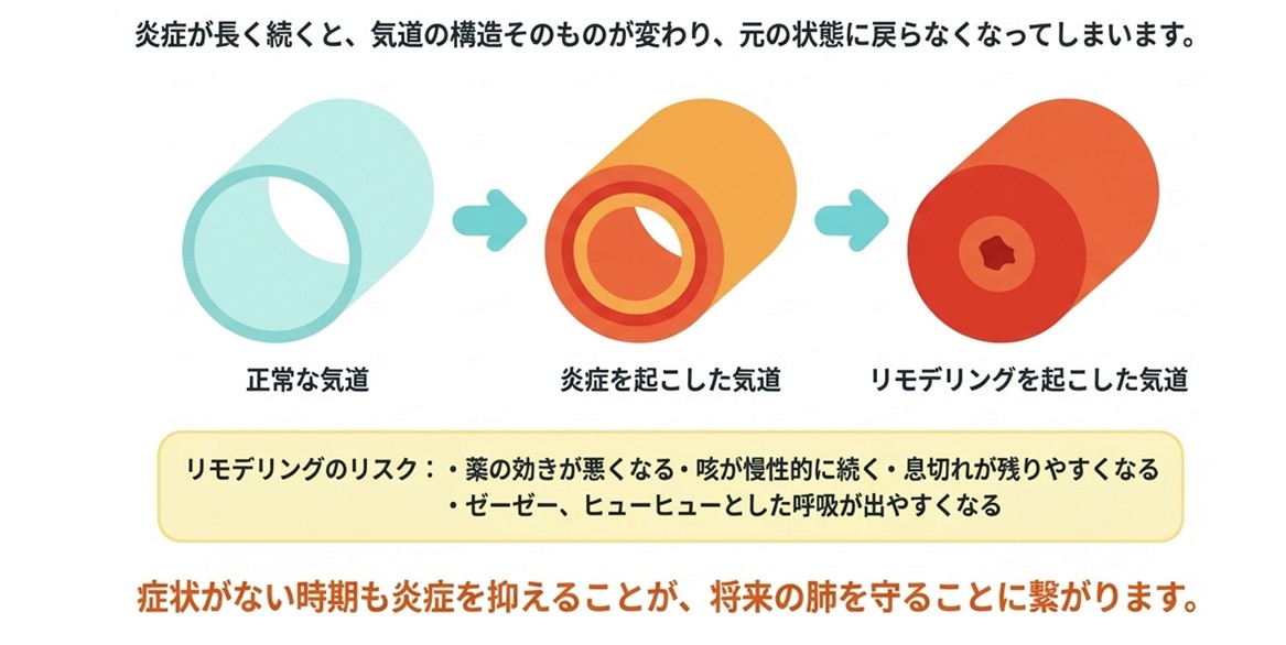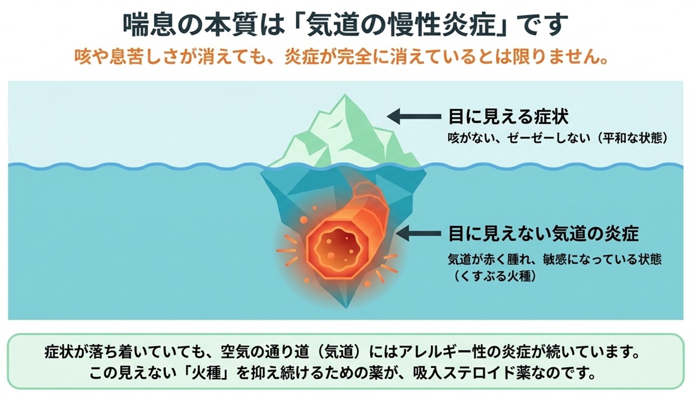 そして重要なのは、症状が落ち着いていても、気道の炎症は残っていることが多いという点なんです。