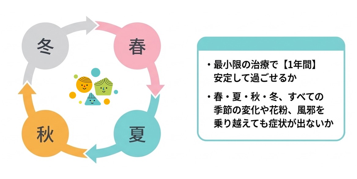 季節の変化や花粉、風邪などを乗り越えても症状が出ないか。