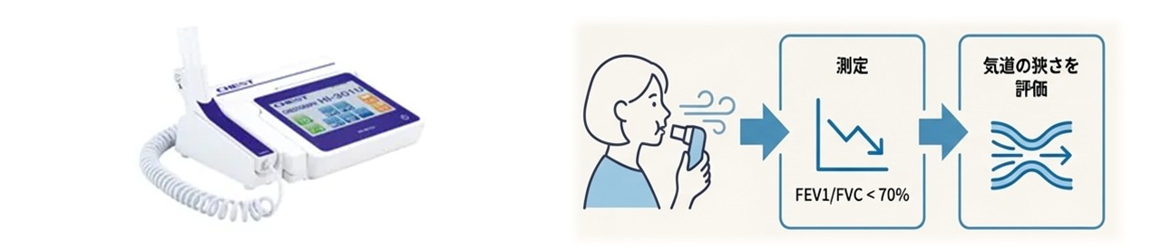 この検査により、気道がどのくらい狭くなっているか、また治療でどれだけ改善しているかを評価することができます。