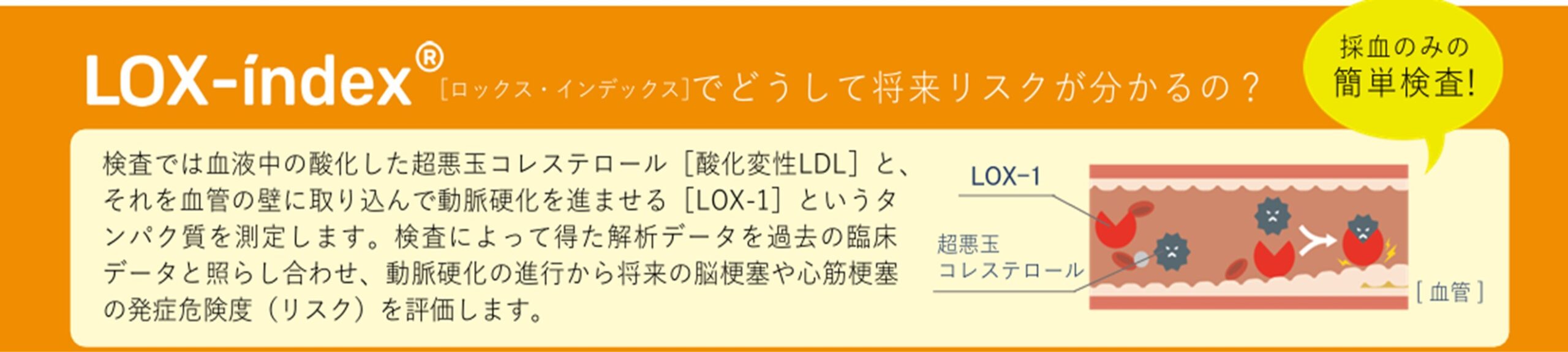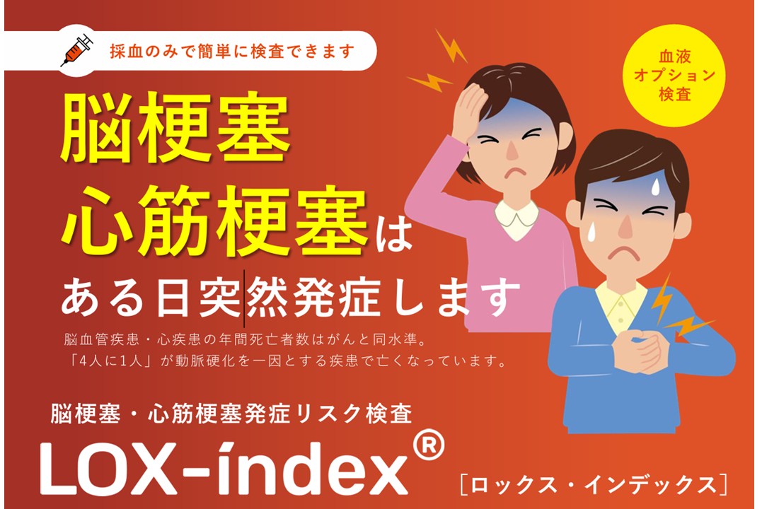LOX-index®(ロックスインデックス)は、血液検査によって 将来の脳梗塞・心筋梗塞の発症リスクを評価できる検査です。 動脈硬化の「進行度」ではなく、 実際に発症する危険性を数値化できる点が大きな特徴です。