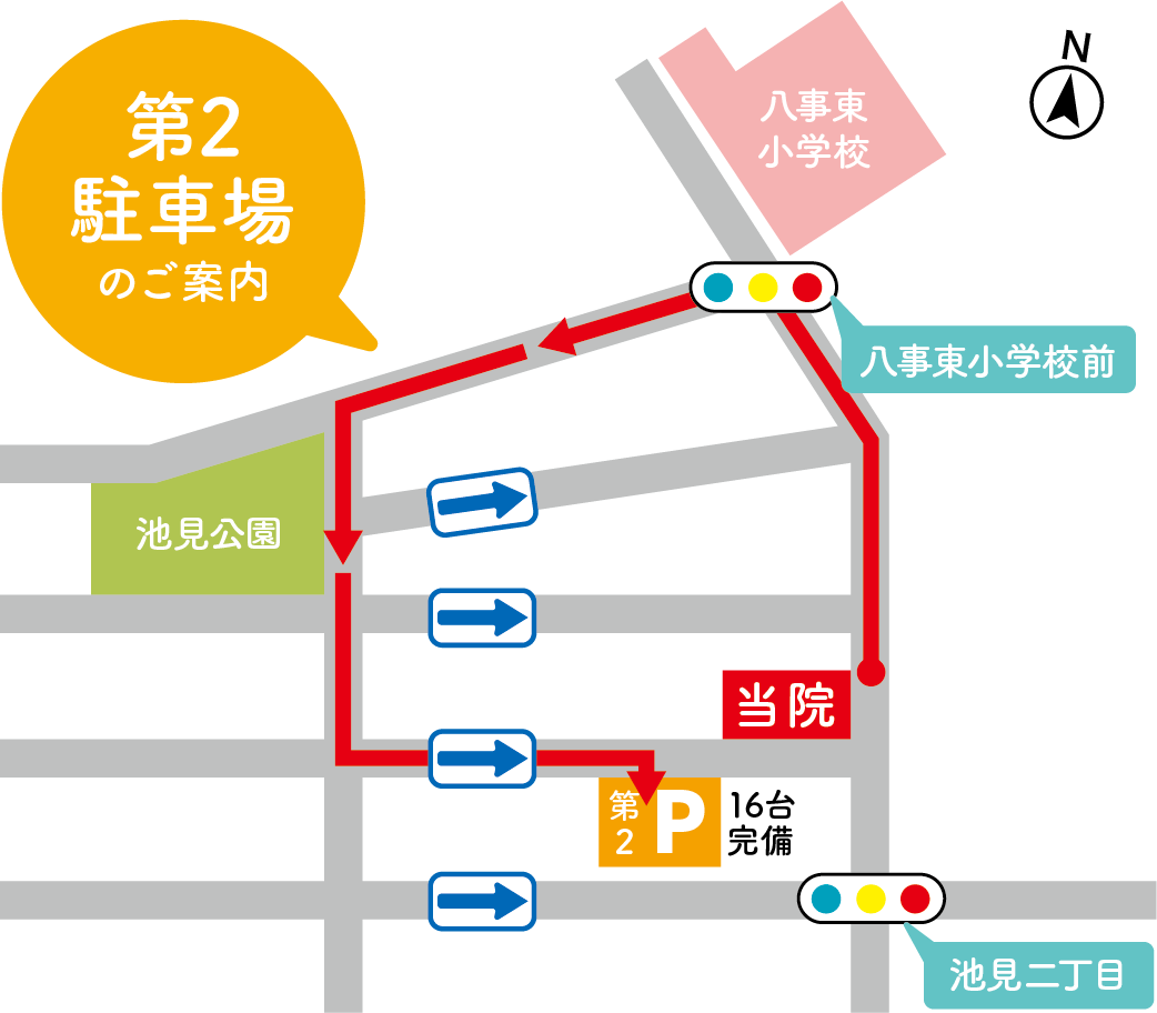 お車の場合には、第二駐車場が便利です。ぜひ下記の地図、動画を参考にしてお越しください。